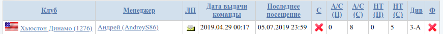 Мда. В ответ тишина Подождите немножко и менеджер получит КК от скрипта. Основаниями для автоматического выставления команд в свободные являются: - отсутствие заходов в панель управления своей команды на протяжении 14 календарных дней (2 недели). -------------------- |