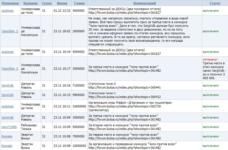 На фоне двух предыдущих сроков двадцать девятый сезон прошёл мирно и спокойно: наш футсоюз оставили в покое, не грозили сокращениями и объединениями. Само собой, это не счастливое стечение обстоятельств, а всего лишь статистика количества свободных клубов, которых у нас на данный момент остается семь, но в течение сезона зафиксирован небольшой период, когда их было всего четыре. Несколько раз заказывал рекламные объявления, но приход новых менеджеров редко с этими объявлениями совпадал, так что, как и говорил раньше, люди приходят по собственному желанию, а вовсе не в результате какой то активной деятельности. Было бы куда приходить.) Выражаю благодарность Yanichkin_S за его систематические рассылки от имени ФС, которые необходимо делать согласно правилам. Это в равной степени входит в обязанности как президента, так и вице-президента, но он добровольно и полностью взял рассылки на себя. Выражаю благодарность Masterr за управление нашей сборной. Я не думаю, что тут кто-нибудь верит в возможность чуда, поэтому главное для нас не победа, а участие, ну а с этим тренер отлично справился. Благодарю gootman за организацию коммерческого турнира под эгидой Чили, а так же за пару отчетов по ДЮСШ (надеюсь, что мою заявку на выплату вознаграждения одобрят). Отдельная благодарность Rumata за организацию и проведение конкурса "Чили против всех!", - наконец-то нам это удалось сделать и благополучно довести до выплат как организатору, так и участникам (выплаты, кстати, уже проведены). Выдвинулся на тридцатый сезон, всё равно желающих больше нет. Надеюсь, что он пройдет так же мирно и спокойно, как и этот. Всем перечисленным "общественным деятелям" предлагаю продлить пребывание на своих должностях, ведь "кто, если не мы?") По сути, в случае "победы на выборах" я сам всех переназначу, но если возникнут возражения и самоотводы, то без проблем переиграем. Хотелось бы и на остальные должности найти кандидатов, но всё это исключительно на добровольных началах. По итогам этого сезона в бюджете ФС бесполезно сгорит больше 150 миллионов, в то время как у части менеджеров остаются не выплаченные кредиты. Сообщение отредактировал Jose Cuervo - 4.2.2018, 20:37 -------------------- |