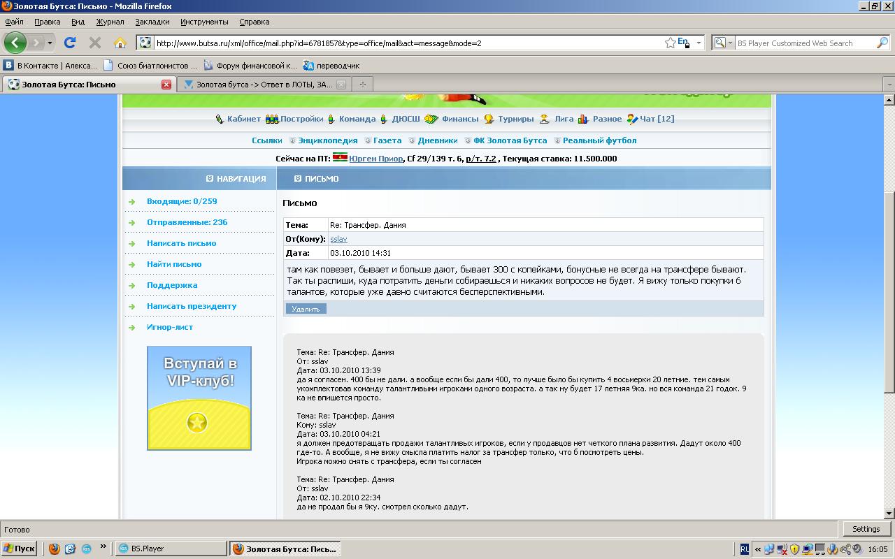http://www.butsa.ru/roster/psv/Она намного лучше и преспективнее моей Санкт-Паули, но я же этого не делаю... А борюсь как и все за медали, так почему же Бавария должна идти ко дну в 4-б, что потом он ее бросил через 4-5 сезонов, но ей и после 8-9 сезонов не вернуться в Первый дивизион. Кто-то ее растил, душу вкладывал, а другой пришел и развалил...
