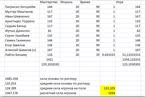 После такого расчета С11 на поле в итоге команда, которая выходила на поле как более слабая, становится по отчету как более сильная, и за проигрыш теряет мораль, бонусы, и очки менеджера.