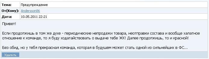 По прошествии 2-х месяцев периодические непродажи товара особенно по четвергам, 2 автосостава, через раз на третий играет товы, за постройками не следил (когда только укажу проводил ремонт) и, самое главное, во время КК заганял до 75% Ф/Г некоторых игроков, я посоветовал этим игрокам установить нагрузку на тренировке на 0%. После их восстановления, я вновь посоветовал установить Ф/Г на 100%.