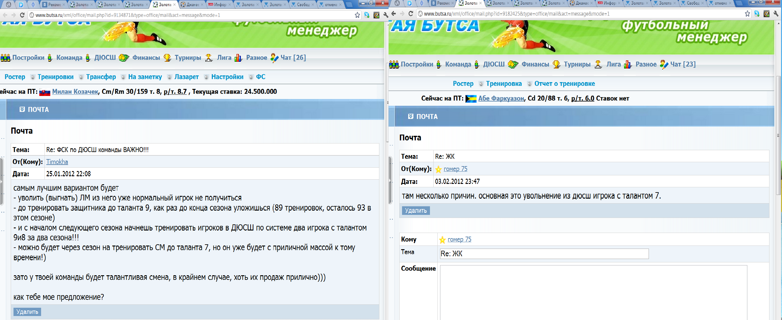 http://forum.butsa.ru/index.php?showuser=81594 , дал мне совет (трудно назвать это советом), чтобы я уволил одного игрока с талантом 7, под предлогом того, что это лучший выход из сложившейся ситуации. Я доверился ему, после того, как я уволил игрока, вице-президент подал на меня в комитет Fair Play, и мне выставили ЖК.