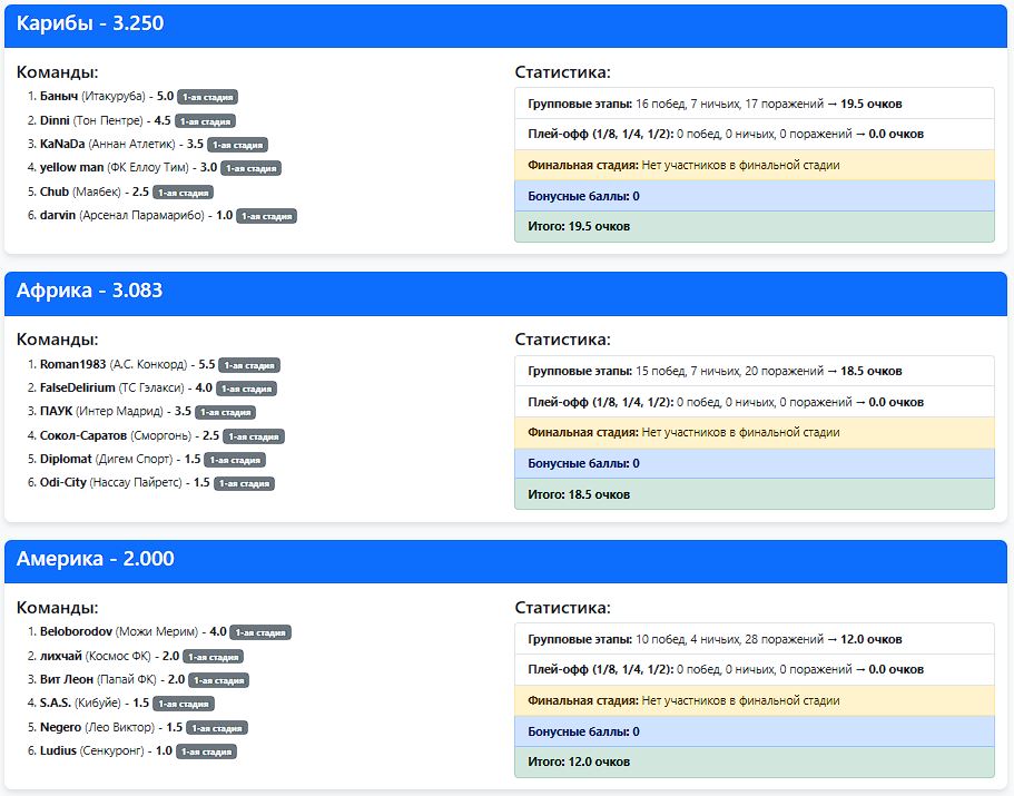 Межконтинентальный Кубок Карибской Лиги-18 (Битва континентов) 2-я стадия. Картинка после 18 туров.