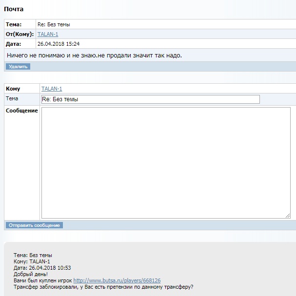 После этого я связался по одному из трансферов с покупателем и получил такой ответ: