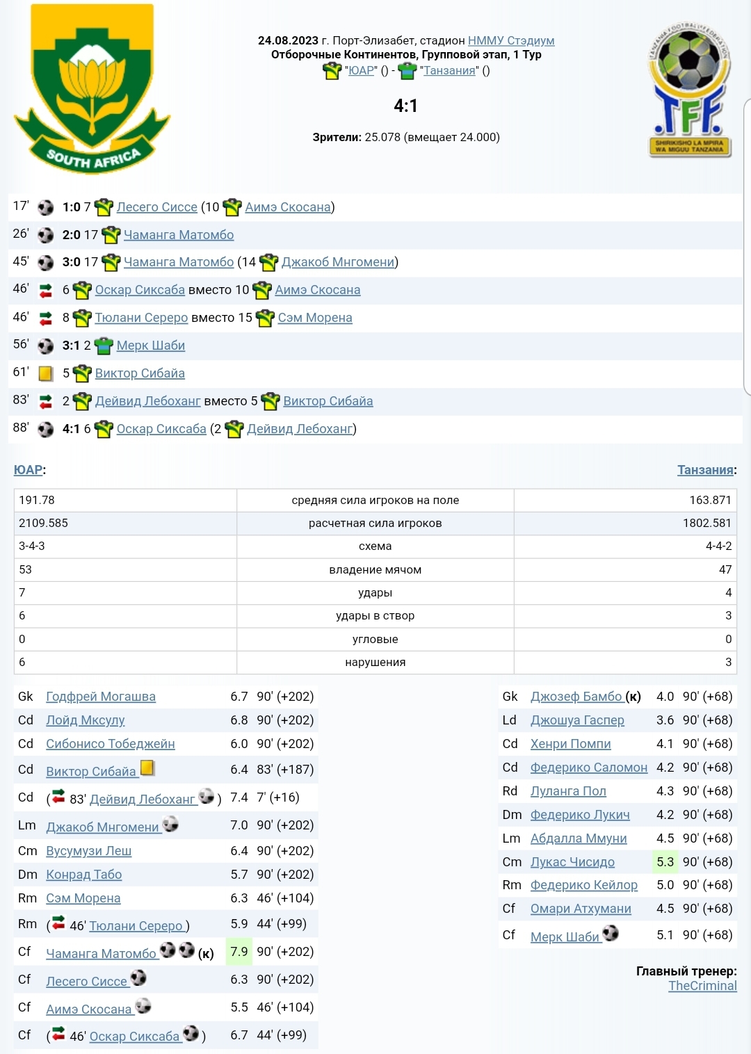 "ЮАР" (4) - "Уганда" (0)Зрители: 43.796 (вмещает 45.000)
