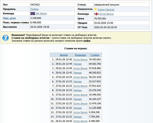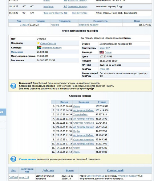 Подобные действия подрывают честность и дух соревнований. Использование команд для фиктивных сделок или ради блокировки лотов соперников недопустимо. Я призываю всех прекратить такие практики и соблюдать джентльменские правила - уважение друг к другу и честное поведение на трансфере.