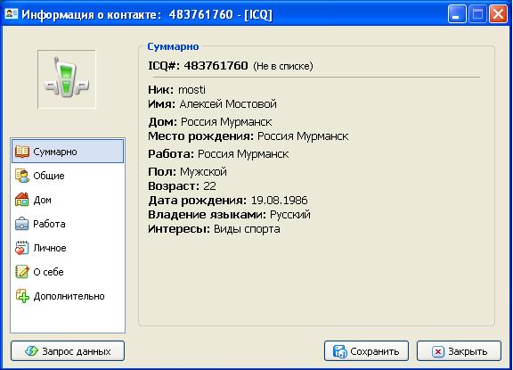 Смотрим ваш профиль в ICQ (в прикрепленном файле): опа, город Мурманск! я прав? А теперь еще смотрим сюда: http://www.butsa.ru/users/258116 , ой! тоже Мурманск! опять совпадение? уважаемый, это видимо ваш второй аккаунт, я бы спасибо сказал, что вас не забанили совсем. разные IP? а в чем проблема? два канала доступа по GPRS, и мы имеем на одном столе 2 компа с разными IP. по поводу статьи, у вас вроде ст. 2 http://forum.butsa.ru/index.php?showtopic=...&start=1590 по поводу ваших увешеваний о будушем сложном положении вашей команды, дык вас никто не просил "раздевать" другие команды, ну и ниужели для чемпиона Каймановых островов - 2 будет сложно снова поднять команду буквально за 3 месяца? практически фантастический взлет. -------------------- |