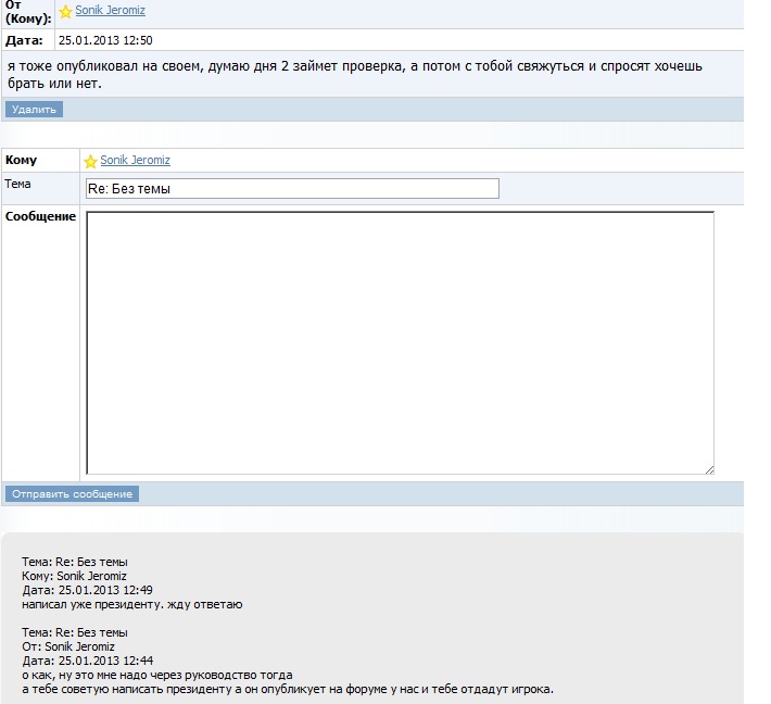 Во избежание недоразумений новый менеджер команды должен сам лично подтвердить свое желание купить игрока. Он может сделать это либо в этой теме, либо через службу поддержки ФП. |