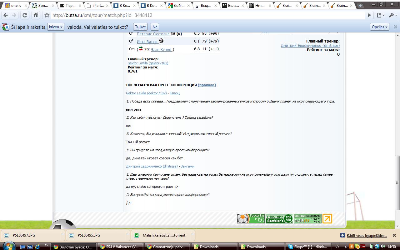 Прошу принять какие-либо меры в адресс менеджера, который оскорбил меня в послематчевой конференции. ССЫЛКА НА МАТЧ : КВАРЦ-ВАНГАЖИ ССЫЛКА НА МЕНЕДЖЕРА : ГЕКТОР КАРТИНКА прилагается. -------------------- Менеджер команды Вангажиdmitrijse[/i] Дмитрий