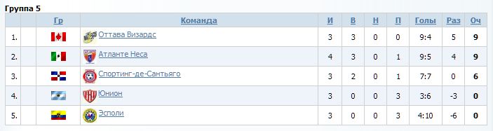 Групповой турнир, Результаты жеребьевки Группа 5 Оттава Визардс 162,4 Атланте Неса 160,6 Юнион 150,8 Спортинг-де-Сантьяго 154,3 Эсполи 153,0Группа 6 Бока Хуниорс 155,7 Гремио 155,0 Муниципаль Нандаюре 156,8 Трухильянос ФК 147,5 Сан-Сальвадор 151,4Группа 7 Коронель Бологнеси ФК 158,2 Ривер Плейт 149,8 Депортиво Реколета 157,0 Циклон 151,7 Эштрела Роя 149,8Группа 8 Рампла Хуниорс 156,3 Эвертон Винья 149,6 Ричмонд Хилл Юнайтед 154,8 Марискал Браун 161,0 Барселона Санто-Доминго 151,4-------------------- |