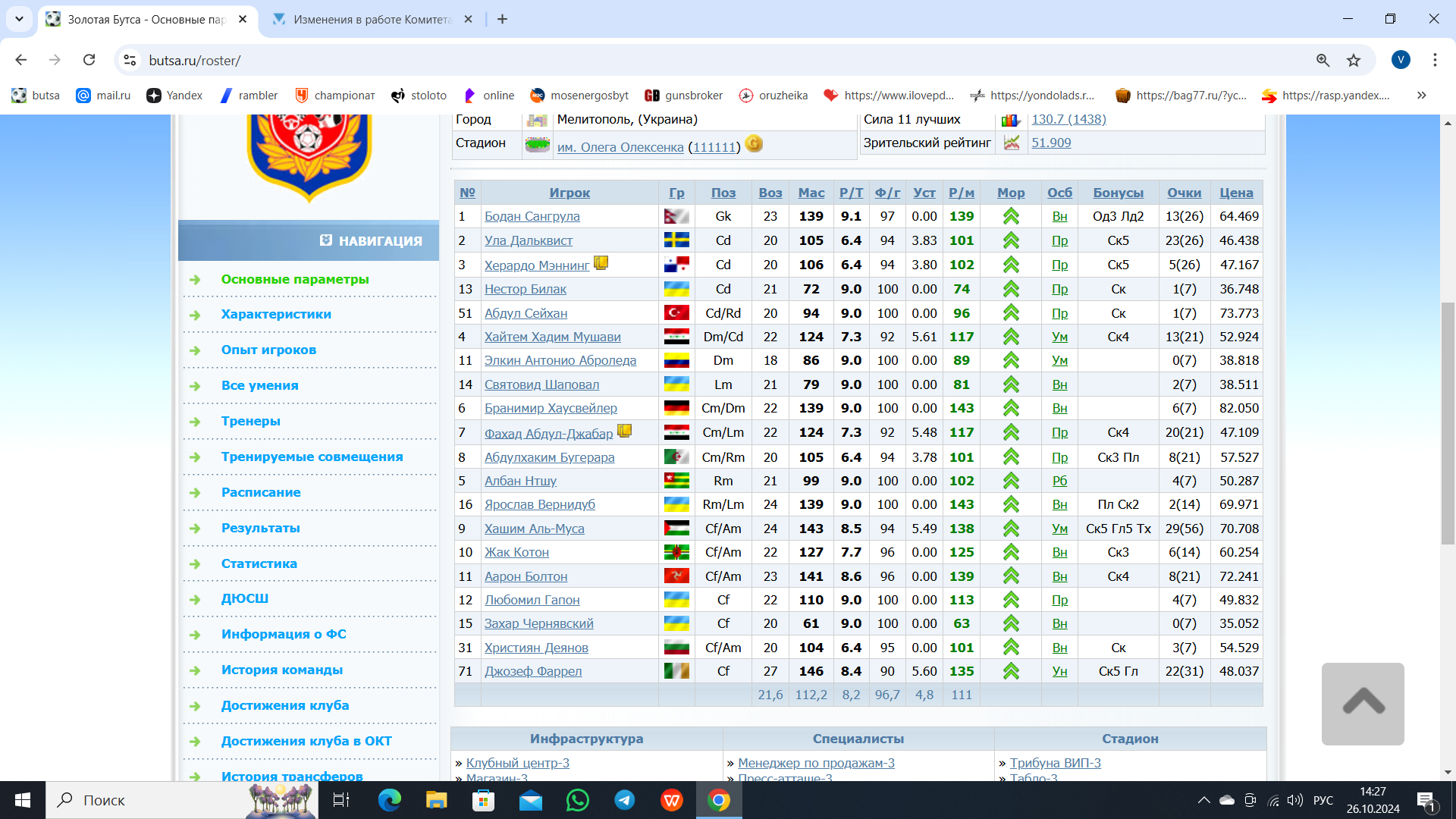 25.10.24 02:01 Трансфер игрока Элкин Антонио Аброледа -326.781.001 Онсе Кальдас -602.041.159 Третье снятие денег!!! Игрока перевели мне. Единственный плюсик на фоне жирных минусов. Ну совсем страшно становится!!! Загнали команду в глубокий кризис! Натуральный ущерб команде покупателя! Товара нет! Тренек в 13:00 не будет! Прошу срочно исправить! Трени ожидаемо не прошли. КТО И КАК МНЕ ВСЕ ТЕПЕРЬ КОМПЕНСИРУЕТ? КУДА ПИСАТЬ? КТО РАБОТАЕТ НАД ЭТОЙ ХРЕНЬЮ? Ребята, Спецы, финансы исправили, все подогнали, а вот с треньками беда. Треньки пятницы и сегодня не прошли. Что-то не так. Олком https://www.butsa.ru/xml/players/roster.php?id=1551 И третий файл, все замерло, по четвергу 24.10.2024 Сообщение отредактировал Tota - 26.10.2024, 15:30 |