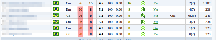 У каждого игрока есть умения и физа. Надо стараться чтобы физа была на 100% (см. "Тренировка")