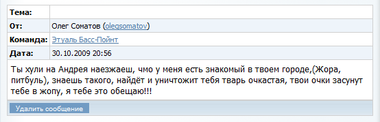 R0nan amdrei171717 начал флудить мне в личку с оскорблен... 31.10.2009, 18:02