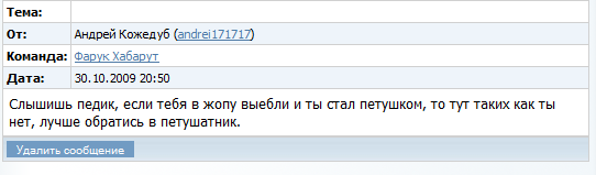 R0nan amdrei171717 начал флудить мне в личку с оскорблен... 31.10.2009, 18:02