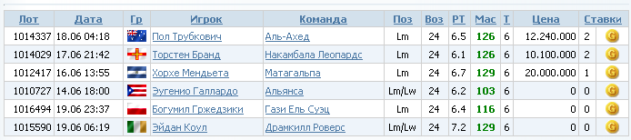 мне хотелось бы все таки увидеть того игрока из-за которого "необходимо" переписывать правила игры и хотелось бы знать какую мен запросил первую ставку.... Если это вопрос ко мне, то я на него ответил. Смотри выше. к тебе....ид игрока и сумму какую просил за первую ставку, если не трудно... Я уже выше ответил тебе. Посмотри в моей команде Матагальпа левый полузащитник 24 года. Просил 40 лямов. Раз 10 перевыставлял! Затем ставка была. Потом сняли. Сейчас попросил 20 лямов. Ставка есть. Но думаю мало ... думаю за 40 - 50 лямов его продать. -------------------- zhuravl1981