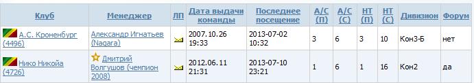 2) А.С. Кроненбург (4496) http://www.butsa.ru/xml/players/roster.php?id=4496 3) Регулярные непродажи товара и неотправка составов. 4) 5) В личку неоднократно отправлялись письма + письма с предупреждением Прошу выдать предупреждение 1) Дмитрий Волгушов (чемпион 2008) http://www.butsa.ru/users/253340 2) Нико Никойа (4726) http://www.butsa.ru/xml/players/roster.php?id=4726 3) Регулярные непродажи товара и неотправка составов. 4) 5) В личку неоднократно отправлялись письма + письма с предупреждением Прошу выдать предупреждение 11.07.2013 отправлены запросы 13.07.2013 чемпион 2008 ответил на запрос и сказал, что из-за сессии не мог уделять времени игре. вынесение решения откладывается до первого неисполнения основных обязанностей менеджера 14.07.2013 Nagara получил ЖК от скрипта Nagara ответил, что до 24-го уехал в отпуск. Сообщение отредактировал Caroline - 21.7.2013, 22:02 -------------------- |