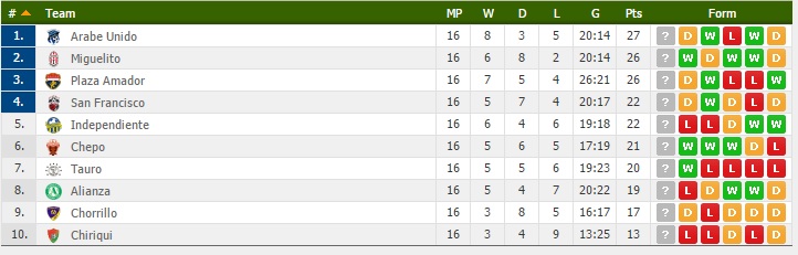 Реальная Панама. Положение в чемпионате на данный момент. Найдите свою команду. Я не нашел)