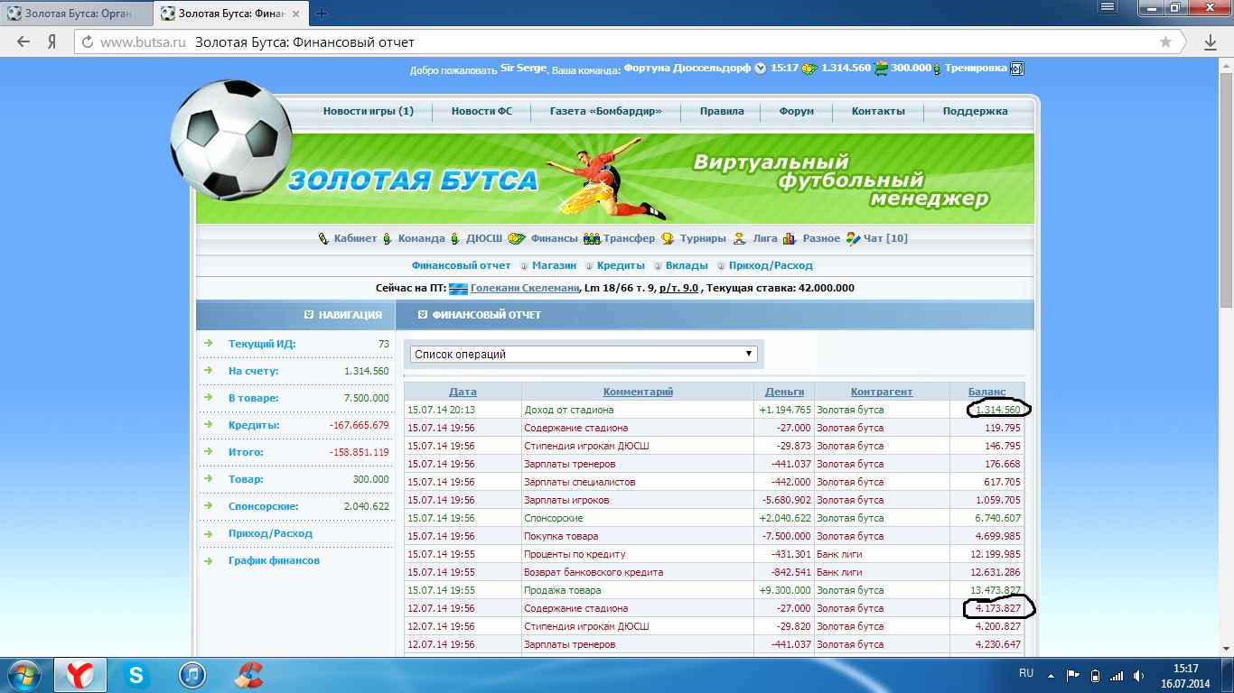 Меня не раз выручали с подобным, вот снова пришёл за помощью. Можно ускорить трансфер - http://www.butsa.ru/players/600097 ? Две причины. 1. Финансовая. У меня после сегодняшнего ИД скорее всего будет минус, сами посудите. Разница перед прошлым и позапрошлым матчем очень велика. (скрин Финансов прилагается). 2. Недорогой игрок висит на ПТ, хотелось бы урвать. Чтобы становление команды из игроков 27 лет закончить. Игрок фланговый, у меня нет никого на той позиции, а уходит за не слишком большие деньги. Вот. Таким образом усилю команду, если он на Ауке много не наберёт, и разберусь финансово в команде, чтобы не на нитке висеть перед каждым ИД. -------------------- ![]() |
