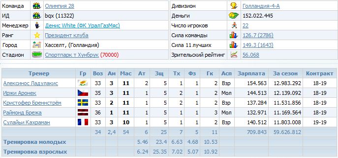 Дак я его начал продавать, когда ему 31 еще был... и был он "плоским", а теперь стал реальным "цементом" середины поля, посмотрите профили Отбора и Опеки. Качались тренерами 25+ внизу скрин. Ну, если так рассуждать, то должен за 60 уйти (был куплен за 61). А этого купили дешего, качнули профили и р/т - и должны были продать за теже деньги, но продался он за 30 - без ущерба покупателя. А вышеуказанную 9-ку я вообще брал за 1млн, а через пару сезонов продал за 97 - налицо явный ущерб покупателя, а не удачный трансфер. А вот этой сделкой я вообще горжусь... да, качал ему профили тренерами в сумме по защите 25+... растил р/т... но все же - разница огромная закупки и продажи - неужели и тут "виновен" И это только примеры моих трансферов. Другие трансферы с лета 13 года, подобные данной сделки: http://www.butsa.ru/players/40642&archieve=1590982 http://www.butsa.ru/players/101368&archieve=1586700 http://www.butsa.ru/players/18558&archieve=1582765 http://www.butsa.ru/players/41607&archieve=1582075 http://www.butsa.ru/players/37656&archieve=1551822 Еще трансфер с подобной массой и возрастом еще на ПТ, но уже цена подошла к 30, продает КФРК, кстати. Наверно уточнить надо у покупателей - ведь они создают спрос. А на той стороне - адекватные люди, понимают, что они делают. так и не увидел ответа на данный пост... Полагаю, что ответом будет решение по обсуждаемому трансферу ладно, будем ждать... вопрос тогда другой - как долго рассматривается такой вопрос? и - как Вы проверяете "вменяемость" покупателя? Сообщение отредактировал ФК УралГазМяс - 27.9.2013, 12:43 -------------------- |