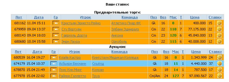 Еще сутки он отображался в \"моих трансферах\", как купленный мной (его имя было подсвечено голубым цветом). Вообще если лот был подсвечен голубым цветом, то это значит, что игрока Вы не купили. Вот мой текущий трансфер: Голубым цветом подсвечен Асбьерн Бекманн. Но если открыть информацию о лоте, то видно, что торги там я проиграла. |