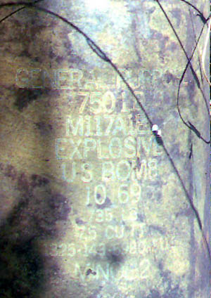По этой авиабомбе мы раз в неделю ездили. Однажды бульдозер брод чистил, и её обнаружили. Мы сообщили нашим сапёрам на объекте. но они не успели. Местные жители её приватизировали. На вопрос "Зачем она им?" получили спокойный ответ "Внутренности на удобрения - корпус в металлолом". "А вдруг рванёт?", "Не боись. Они опытные. Всё умеют." И действительно. Через неделю мы ехали по той же дороге, и обогнали девушку, у которой к багажнику мопеда была привязана именно та бомба. С выпиленным в корпусе отверстием, и уже пустая.