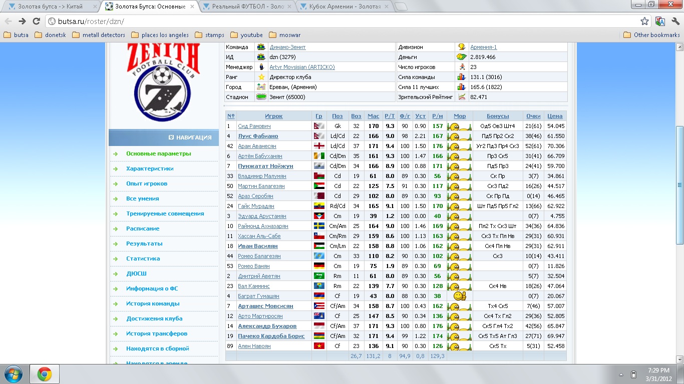 Статистическая справка: ![]() Адана(Ереван, (Армения) Менеджер Artush Martirosyan (Martirosyan) Стадион Азатамарт 74000 мест Сила 11 лучших 162.7 (1790) Artush Martirosyan (Martirosyan) возглавил клуб 25 января 2007 года, как раз в Татьянин День - покровительницы всех студентов. Команда находилась в 4 дивизионе, но благодаря грамотному руководству тренера смогла выйди в первый дивизион. В 16 сезоне пробилась в финал Кубка Армении, но проиграла клубу Аракс со счетом 0:1. В 17 сезоне после 23 туров в чемпионате Армении идет на третьем месте, со следующими показателями: +15=4 -4, ;8: 23, набрано 49 очков. Когда я прибыл в Ереван, в аэропорту меня встретил сам Artush Martirosyan (Martirosyan), я прошел через все пункты контроля, сели в новенький Порш Каен и поехали на базу клуба. Я начал свой разговор: --- Какой для Вас стал самым тяжёлый матч в этом розыгрыше КЛ? --- Наверно ответный матч с Жерминаль Берсхот, этот поединок определял команду, которая будет участвовать в групповом раунде КЛ. Соперник был очень силён, к тому же играл дома, после того, как в родных стенах моя команда одержала победу с минимальным счётом 1-0, подчеркну очень скользкий счёт, на выезде нужно было обязательно забивать или хотя бы зацепиться за ничью, после того как соперник первым забил, я уже расстроился, думал шансов пройти будет мало, но к счастью, на 77 минуте Орхан Набиев сравнял счет, после этого я успокоился, так как уже осознавал, что мы уже 70% проходим в следующий раунд, соперник в концовке матча забил всё такие гол и выиграл встречу, но дальше, же прошла всё таки моя команда из-за гола на чужом поле, очень эмоциональный поединок выдался. ---- Приходилось ли Вам играть с АС в еврокубке? И что Вы чувствовали? --- В групповом раунде играл против команды Хартс, соперник находился в отпуске, я ожидал, что будет какой-то сюрприз, потому что, к тому же дома АС далеко не подарок, но моим подопечным все же удалось довести матч до победы, забив дважды и сохранив свои ворота в неприкосновенности. Поэтому только положительные эмоции от этого матча. ---- Какие цели у Вас в этом розыгрыше КЛ? --- Цель дойти до финала, хотя понимаю, что это очень сложно будет сделать. ---- Довольны ли Вы, как команда выполняет Ваши установки на игру? --- Доволен, очень радуют новички клуба, которые вписались в тактику команды. ---- Вы тактик или стратег? Чего опасаться Вашему сопернику? --- Наверно тактик, смотря, что именно вы подразумеваете. Сопернику нужно будет опасаться домашних тактических заготовок, в моем блокноте их много, под разные ситуации. ---- Если Вы пройдёте дальше, планируете усилиться? --- Конечно, без грамотных усилений трудно будет дойти до финала. ---- В 18ом сезоне, где Вы будете играть в ЛЧ,КЛ или Вы "закрыли дверь" в Европу? --- Пока не могу ответить на ваш вопрос, я иду на 3 месте в чемпионате стране, так что, в КЛ моя команда точно будет участвовать, есть шансы занять вторую строчку, чтобы выступать в ЛЧ. Хотелось бы попробовать свои силы на новом уровне. ---- Часто ли Вы заходите в пресс-центр КЛ? --- Да, практически всегда вечером захожу прочитать новости. ---- 1/8 для Вашей команды потолок или есть куда стремиться? --- Конечно, есть все шансы пройти в 1/4. Соперник в принципе равный, могли достаться команды и посильнее, если постараться можно пройти его. Тем более Борнмут играл против нашего чемпиона страны в ЛЧ. Я смотрел эти оба матча, и сделал для себя кое какие заметки, есть представление, 