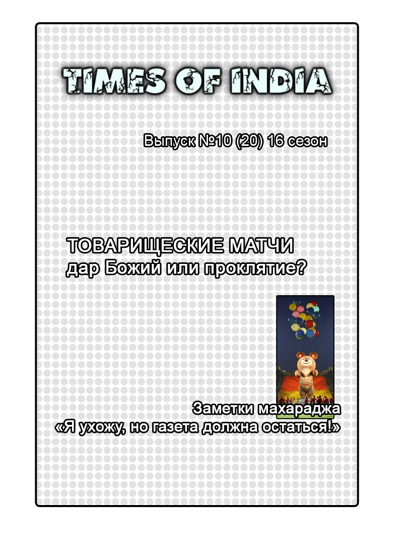 ![]() В этом выпуске: ТОВАРИЩЕСКИЕ МАТЧИ - дар Божий или проклятие? Заметки махараджа. "Я ухожу, но газета должна остаться!" Обзоры чемпионата Индии Читать в блоге >>> Скачать PDF >>>