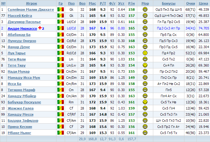Беда с левым флангом полузащиты. Один еще молод и не опытен, а другой стар и слаб. Эту проблему я попытаюсь решить. В целом у нас получаются очень сильные линии. Это должно сыграть нам на руку. В ближайшие дни определюсь с составом на матч. Вот эти 22 игрока: Сообщение отредактировал Герман Соколов - 23.3.2014, 18:23 -------------------- |