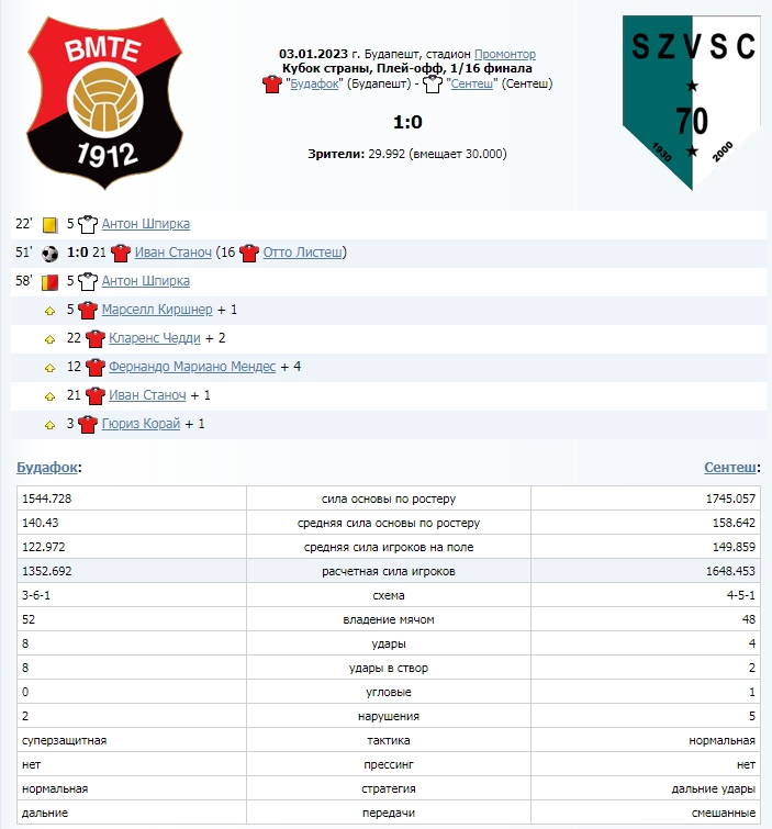 Гена продолжает прикалываться. Играю в кубке ... Соперник заведомо сильнее, выпускаю состав на проигрыш. Но нет! Проигрышный состав выигрывает, несмотря на большую разницу в силе и удаление у соперника. «А я ведь говорил!»))) ставь два последних ползунка на 100 -------------------- Дунэря Кэлэрашь