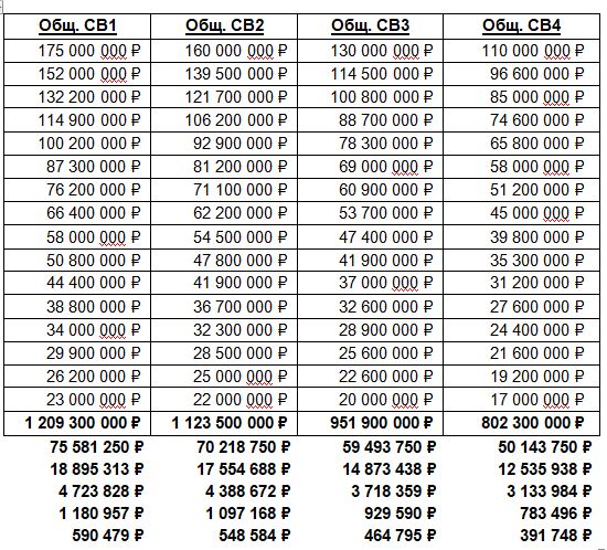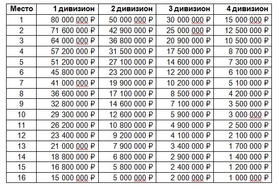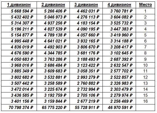 Долго искал, что про них в правилах, но наткнулся толь на то что они есть и относятся ("к доходам, так же, относятся – спонсорские, сумма которых зависит от занятого командой места в предыдущем сезоне"). Как они рассчитываются загадка для меня. Предлагаю свою схему и за основу взять призовые по итогам Чемпионата и Первенств Взять общую сумму всех дивизионов с учётом что 3 и 4 как правило по 2 (3а, 3б, 4а, 4б) Из этих цифр формируем общие спонсорские выплаты (Общ. СВ) на каждый дивизион где, • СВ1 это сумма призовых с 1-го по4-ый дивизионы по позиции • СВ2 это сумма с 1-го по 3-ий дивизионы • СВ3 это сумма 1-го и 2-го дивизионов • СВ4 это сумма 1-го и 4-го дивизионов Сами спонсорские формируются из среднего значения Общ. СВ и делятся на 4 группы по позициям 1-4, 5-8, 9-12 и 13-16, получаем: Понятно, что эти выплаты в идеальном виде и каждый спонсор несёт свои риски в зависимости от дивизиона и позиции клуба, поэтому вычисляем риски по группам в % (с ними можно поиграть): • 1-4 место (4-12%) от спонсора дивизиона • 5-8 место (3-12%) от спонсора дивизиона • 9-12 место (2-8%) от спонсора дивизиона • 13-16 место (1-4%) от спонсора дивизиона Теперь можно привести конечную сумму спонсорских выплат для каждой позиции в дивизионах с учётом рисков: Считаю что с такими выплатами клубы смогут держатся на плаву и заниматься ротацией состава не уходя в сильный минус даже с нынешними ЗП у игрокови держать у себя хотя бы полтора состава сильных игроков Внёс изменения в % и исправил опечатку в одной их формул. Вот что получилось Сообщение отредактировал Denim Demedj - 7.2.2019, 0:12 -------------------- |