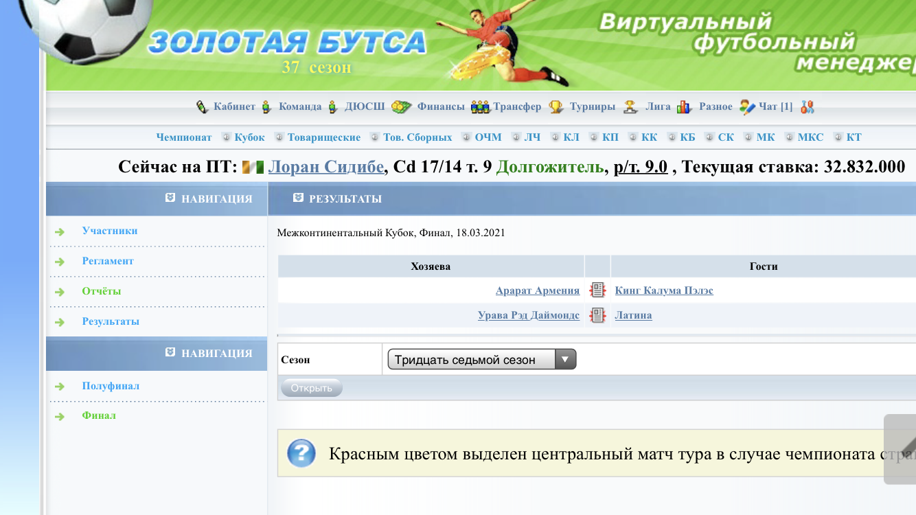 Сколько играю, но такое вижу впервые за все время существования Межконтинентального Кубка. Так какой финал настоящий? По ссылке не видно уже. Исправили уже. Я для памяти скрин сделал |