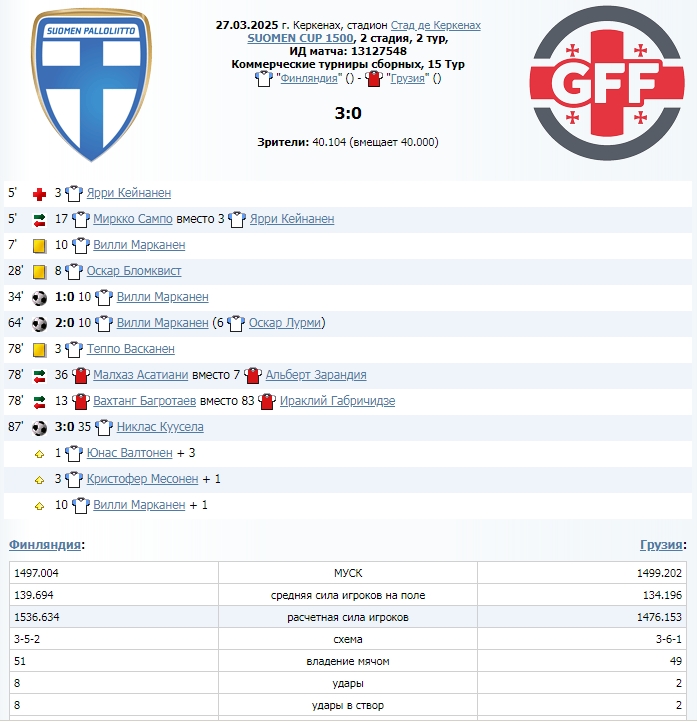 Первый тур ознаменовался двумя ничьими. Нам жребий подсунул две первые игры в гостях. С первой игрой справились - выиграли. Играли примитивно и с акцентом на бей-беги с длинным пасом. Но в итоге перебегали соперника. Тренеры сборных понабрали профильные составы ... и если в КТ прошлого сезона мы были одной из самых профильных команд турнира, то в этом сезоне по профильности мы одни из последних. Ну что ж, посмотрим, кто выживет в этой битве профильных монстров Сделать более профильный состав у нас вряд ли бы получилось - и так собрали самых-самых из тех, с кем можно вписаться в МУСК. Турнир будет в своем роде продолжением соревнования профильных схем построения команд. Как обычно, ровные во всех линиях команды будут противостоять командам со смещенным "центром тяжести" (ослабленные за счет Cm и Dm). -------------------- الشيخ ⚜⚜⚜ Tre kronor ♛♛♛ |
