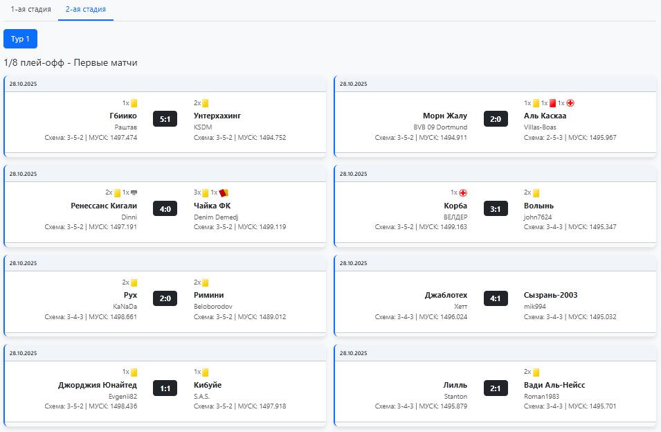 - просмотр любого тура КТ в удобном виде с показом схем, сил, КК и были ли в матчах травмы (удобнее, чем в Бутсе) 1. КП будет, с призами ?????? 2. Жеребьевка будет по рейтингу. 3. Журналистика будет (АДАМЫЧ, Баныч) Список Менеджеров вышедших в плей офф: