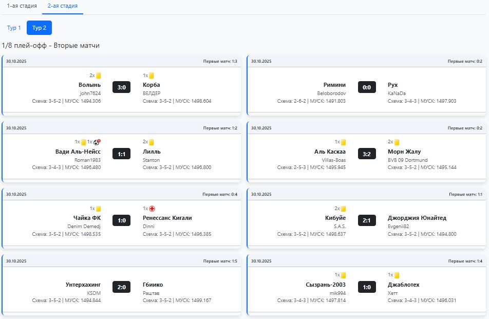 Коммерческий турнир, Кубок Мастеров - XXVIII 2-я стадия, 1/8 плей-офф - Ответные матчи. показать