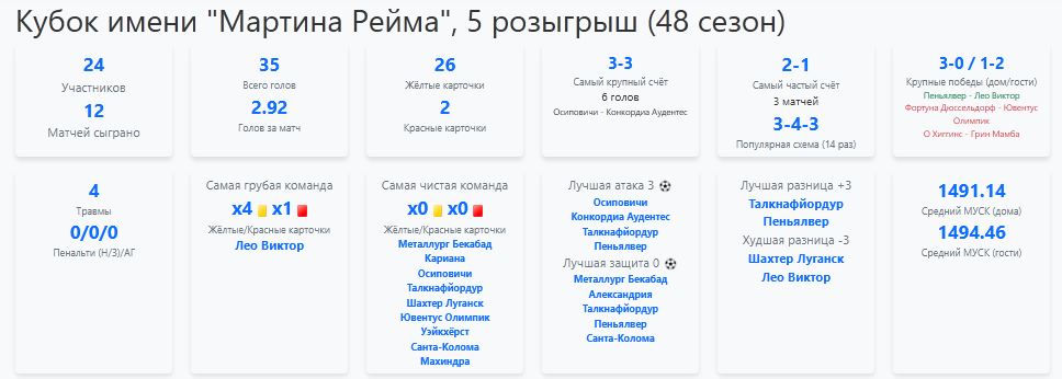 Футболистам же, вряд ли, грех жаловаться на погоду. У них вся борьба впереди. Чемпионат, кубки континентов среди клубных команд. Коммерческие турниры и чемпионаты континентов. Прохладно точно не будет. Все остальное зависит только от них самих. Коммерческий турнир «Кубок имени Мартина Рейма». Групповая стадия. Первый тур. Группа 1. "Металлург Бекабад" (Бекабад) 1:0 "Тервис" (Пярну). Республика Узбекистан. Город Бекабад, стадион Металлург. Открытие коммерческого турнира «Кубок имени Мартина Рейма» проходило в Средней Азии, в Республике Узбекистан. Право провести церемонию открытия турнира выпало городу Бекабад, что в 140 километрах от столицы страны Ташкента. Городу строителей, чьи мастера известны по всей стране, и основой экономики которого является именно строительная промышленность. После непродолжительной церемонии открытия, команды заняли свои места на поле. Прозвучал свисток судьи и игра началась. Маг, волшебник и прорицатель Мерлин, главный герой британский легенд и мифов, как-то сказал: «Только дитя ждет от жизни справедливости; мужчина же принимает не ропща все, чем оборачиваются его поступки». Игрокам «Тервиса» из эстонского города Пярну остается только вспоминать слова друга, советника и наставника короля Артура. Эстонцы приехали в теплые, благословенные края Узбекистана только побеждать. Настрой у игроков был нужный и правильный, ставший для хозяев поля некоторой неожиданность. Гости с холодных берегов Балтийского моря явно превосходили оппонентов в игре от обороны и в средней линии. Особенно , в средней лини. «Металлурги» явно не справлялись с полузащитой соперника, позволяя ей доминировать в центре поля. С другой стороны, не могу не отметить того обстоятельства, что оборона хозяев поля, со своей задачей, все-таки справилась, причем справилась прекрасно. Защита «металлургов» встречала эстонских нападающих на дальних подступах к штрафной. Встречал активной и корректной игрой, вынуждая соперника бить по воротам издалека, зачастую в «молоко». Так продолжалось почти весь матч. Гости пытались прорваться к воротам соперника, хозяева – поймать эстонцев на контратаке. Все шло к тому, что матч закончиться заслуженной боевой ничьей. Но, наступила 80 минута встречи. Останавливая атаку соперника, эстонский защитник нарушает правила на левом фланге недалеко от своей штрафной. Исполнять штрафной берется Ник Фофана. Левый фланг. Позиция у нападающего очень неудобная, угол по отношению к воротам острый. Но Ник Фофана бьет, не задумываясь. Закручивая мяч по крутой дуге. Почти «сухим листом», круглый влетает в ворота гостей – 1:0. Эстонцы не опустили руки. Последовала атака гостей, и на 82 минуте эстонский нападающий дважды бьет по воротам хозяев с близкого расстояния. И оба раза голкипер «металлургов» отбивает мяч. Второй раз – на угловой. Судьба предоставила эстонцам еще один шанс: игрок гостей, разыгрывая угловой, навесил мяч в штрафную прямо на своего партнера. Но тот своим шансом не воспользовался, ударив слишком выше ворот: финальный свисток возвестил победу хозяев поля 1:0. "Александрия" (Александрия) 2:0 "Ньянза" (Ньянза). Республика Украина. Город Александрия, стадион Ника. Александрия, что в Кировоградской области, принимал сегодня гостей из солнечной Руанды. Город машиностроителей и металлургов, встретил дорогих гостей тепл