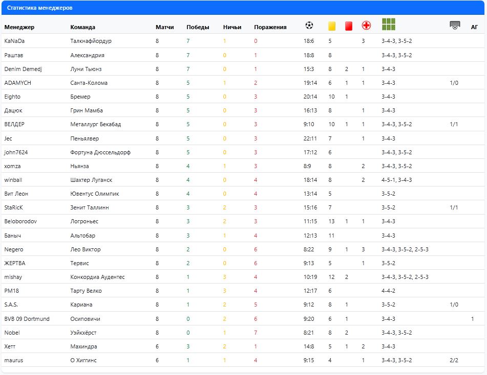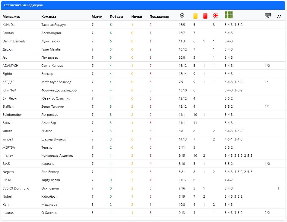 Групповой этап. Шестой тур. Группа 3. "Лео Виктор" (Парамарибо) 0:3 "Зенит Таллинн" (Таллинн). Республика Суринам. Город Парамарибо, стадион Эссед Штадион. Парамарибо – это яркая столица Суринама, известная своим колониальным наследием, многонациональным населением и живописным расположением на реке. Это место, где прошлое встречается с настоящим, создавая неповторимую атмосферу. За сам матч я Вам ничего не могу сказать. Это позор! Позор мне как главному тренеру команды! Победа эстонской команды вполне заслуженная! "Пеньялвер" (Пуерто Айакучо) 0:1 "Луни Тьюнз" (Трэвэллер'з Хилл). Республика Венесуэла. Город Пуерто Айакучо, стадион Пинадос. Пуэрто-Аякучо - это город в Венесуэле, расположенный на реке Ориноко. Он является столицей штата Амазонас и служит важным торговым центром для региона. Город окружен густыми тропическими лесами и является отправной точкой для путешествий вглубь Амазонки. В общем, это ворота в венесуэльскую Амазонию. В этом противостоянии, мы получили еще один удивительный и непредсказуемый результат. Островитяне сделали ставку на быстрый гол и так же быстро ее реализовали: на 17 минуте, с подачи партнера, гол в ворота хозяев поля забил Адриан Сундфорс. Выйдя вперед, гости сделали ставку на оборону и удержания счета. Рискованный шаг, но полностью себя оправдавший: не смотря на то, игровое преимущество перешло южноамериканцам, островитянам минимальное преимущество удалось удержать. "Санта-Колома" (Санта-Колома) 2:0 "Уэйкхёрст" (Баллимена) Княжество Андорра. Город Санта-Коломна, стадион Эстадио Аиксовалль. Как я уже неоднократно говорил, Санта-Коломна – это не город, а деревня. Это поселение с душой, где прошлое встречается с будущим, а каждый гость найдет что-то свое. Это место, которое стоит посетить, чтобы почувствовать его уникальную атмосферу и открыть для себя новые горизонты. Обе команды были настроены на победу в этом матче. Соперники играли одинаково технично, быстро и организовано. Удача долго не могла выбрать – кому же отдать победу в этом противостоянии. Наконец-то, она определилась. В конце первого тайма, на 45 минуте, хозяева поля открывают счет. После перерыва активная борьба продолжилась, а удача снова задумалась. И снова решение приняла только под занавес: 90 минута, точный удар андоррца Юрий Ерицян финальный свисток возвещает победу хозяев поля 2:0. Группа 4. "Логроньес" (Логроньо) 2:1 "Тарту Велко" (Тарту). Королевство Испания. Город Логроньо, стадион Лас Гаунас. Логроньо – это идеальное место для тех, кто ищет аутентичный испанский опыт, где можно насладиться изысканными винами, вкусной едой и погрузиться в атмосферу старинного города. Это место, где время замедляет свой ход, позволяя вам полностью насладиться каждым моментом. Эстонцам было что терять: их позиция в турнирной таблице весьма шаткая. По этой причине, гости начали матч весьма активно, стремясь вырвать победу любой ценой. Весь первый тайм инициатива принадлежала именно гостям. И первыми гол забили именно эстонцы: на 42 минуте гол в ворота соперника забил Армин Махла. А, вот, после перерыва гости заметно расслабились и отдали инициативу сопернику. Чем испанцы, не преминули воспользоваться, устроив настоящий штурм ворот эстонцев. Одна атака испанцев следовала за другой. И хозяева сумели вырвать победу в этом нелегком и тяжелом противостоянии, забив два 