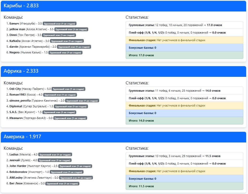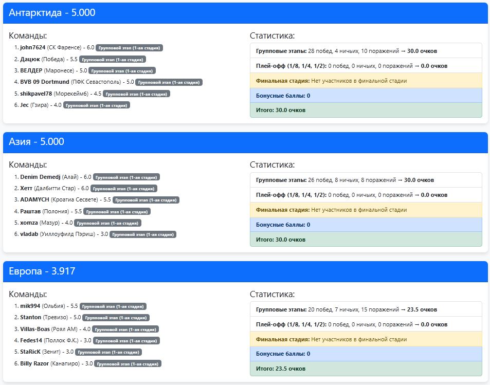 Битва континентов и личный зачёт менеджеров после первого группового этапа: показать