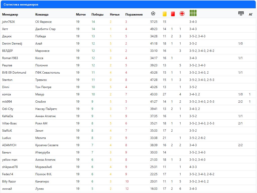Внимание!!! Открыт уже набор в МККЛ-19 на следующий сезон!!! Заявки и участники МККЛ-19 в следующем сезоне: 1) Баныч (Итакуруба) - Карибы 2) Dinni - Карибы 3) Diplomat - Африка 4) Roman1983 - Африка 5) Сокол-Саратов - Африка 6) мясыч - Африка 7) ВЕЛДЕР - Антарктида 8) ПАУК - Америка 9) shikpavel78 - Антарктида 10) vladab - Азия 11) yellow man - Карибы 12) Раштав - Азия 13) Denim Demedj - Азия 14) Хетт (Далбитти Стар) - Азия 15) StaRicK (Зенит) - Европа 16) Дацюк (Победа) - Антарктида 17) ADAMYCH - Азия 18) BVB 09 Dortmund - Антарктида 19) KaNaDa (Аннан Атлетик) - Карибы 20) Chub - Карибы 21) darvin (Арсенал Парамарибо) - Карибы 22) xomza - Азия 23) Jec - Антарктида 24) john7624 - Антарктида 25) Stanton - Европа 26) mik994 - Европа 27) Fedes14 - Европа 28) лихчай - Америка 29) Eighto - Европа 30) Villas-Boas - Европа 31) Ludius - Америка 32) Odi-City (Нассау Пайретс) - Африка 33) S.A.S. - Америка 34) Beloborodov - Америка 35) FalseDelirium (ТС Гэлакси) - Африка 36) Negero (Лео Виктор) - Америка Резерв: Карибы Баныч (Итакуруба) yellow man KaNaDa (Аннан Атлетик) Chub darvin (Арсенал Парамарибо) Dinni Азия Хетт (Далбитти Стар) ADAMYCH vladab Denim Demedj xomza Раштав Антарктида Дацюк (Победа) ВЕЛДЕР Jec BVB 09 Dortmund shikpavel78 john7624 Европа StaRicK (Зенит) Fedes14 Stanton mik994 Eighto Villas-Boas Африка Diplomat FalseDelirium (ТС Гэлакси) Roman1983 Odi-City (Нассау Пайретс) Сокол-Саратов мясыч Америка S.A.S. Ludius ПАУК лихчай Beloborodov Negero (Лео Виктор) Сообщение отредактировал Баныч - 17.1.2026, 3:05 -------------------- Баныч / Грибаныч ("танцует" КТ МККЛ) / Карибаныч (президент Карибской Лиги) - тренер сборной ОАЭ и Реал Эспанья ![]() |
