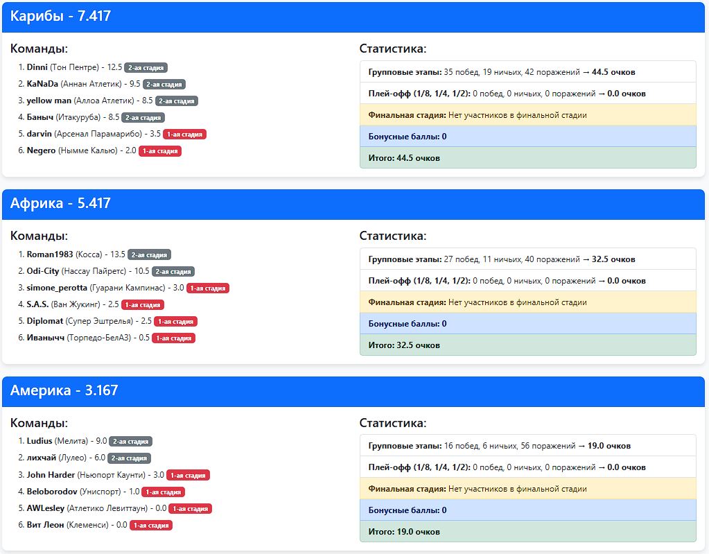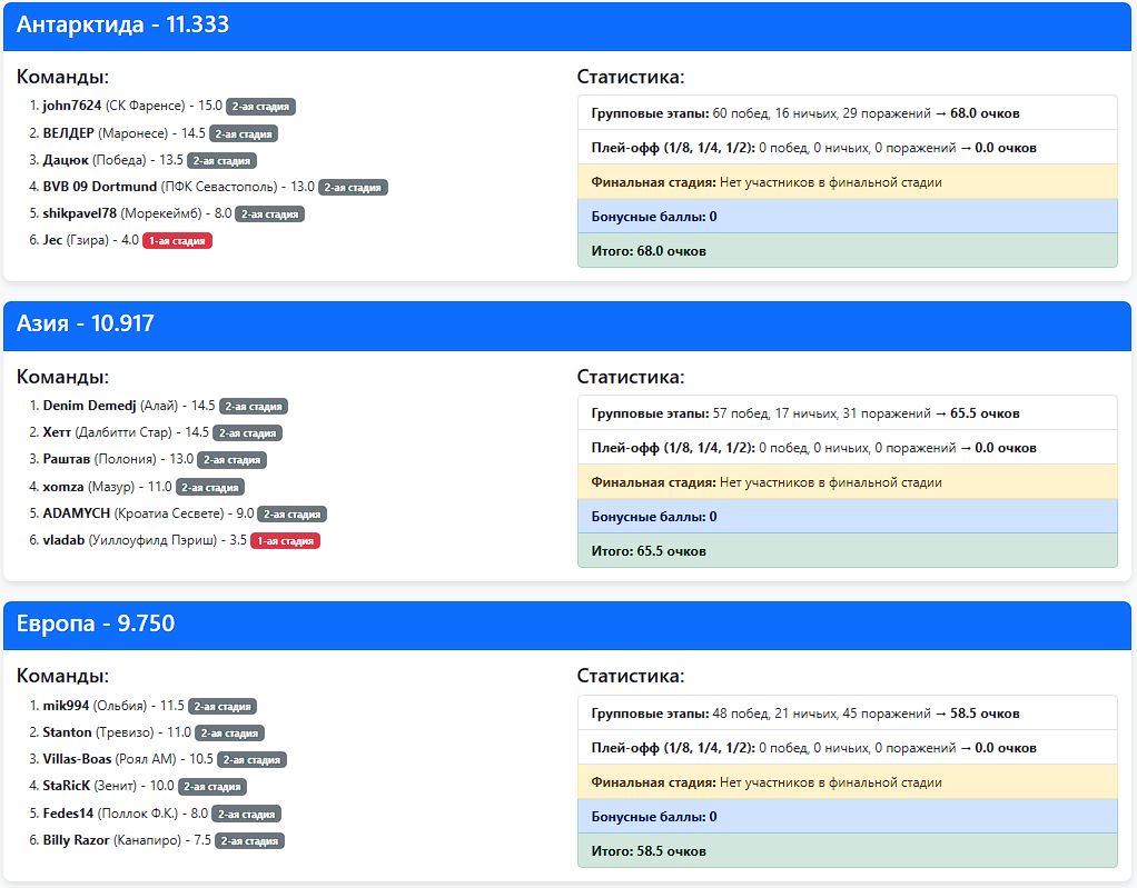 Битва континентов и личный зачёт менеджеров после первого группового этапа: показать