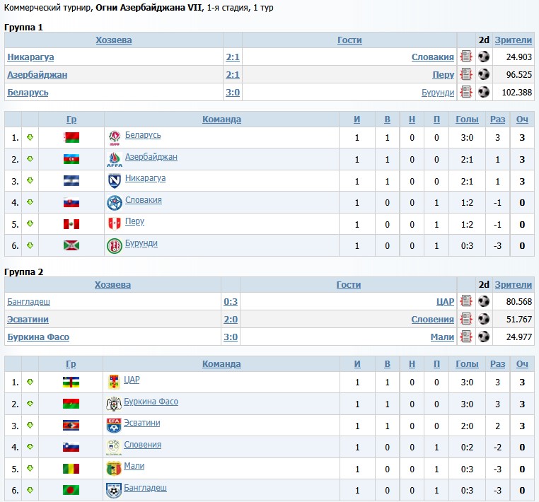 ![]() 2 автосостава омрачили первый тур. "Отличились" Бурунди и Бангладеш. А во всех остальных матчах...победили хозяева) Выиграть на выезде будет тяжело) Теперь берём небольшую паузу, и с 15 ноября будут игры нон-стоп! -------------------- |