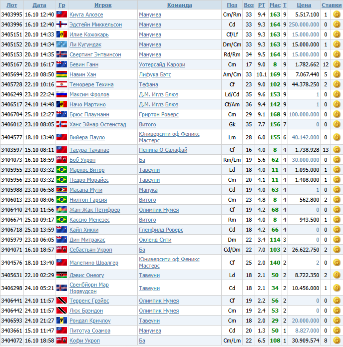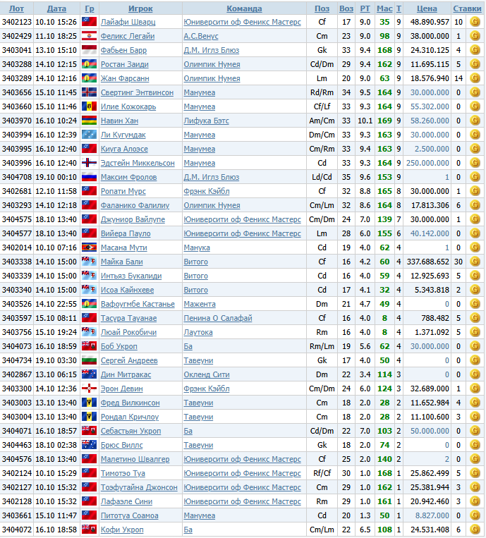 ![]() На трансферном рынке тихо. Игроков с талантом 9 в продаже - 6 Также на трансферном рынке замечен новозеландец четверка работяга - Тим Кобб