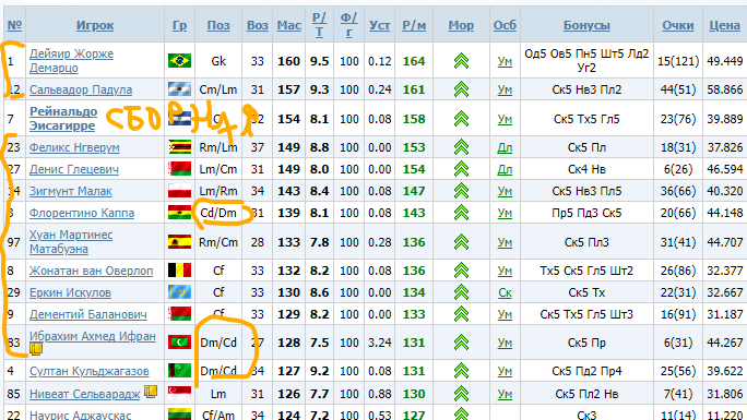 Про травмы и карточки, думаю, Джон имел ввиду что на первом скрине есть 9 работяг, я к ним буду закупать скорее 2 игроков с профилями такой же силы + пару замен, чтобы в случае травм и карточек стариков 160 не просела сила. И он кстати прав. Если будут заявки на КК-КБ именно такой принцип формирования состава будет оптимальным. так не будут же играть старики... зачем?) работяги будут сильнейшими, к ним 3-4 таких же по силе и никакого проседания старики отдохнут -------------------- |