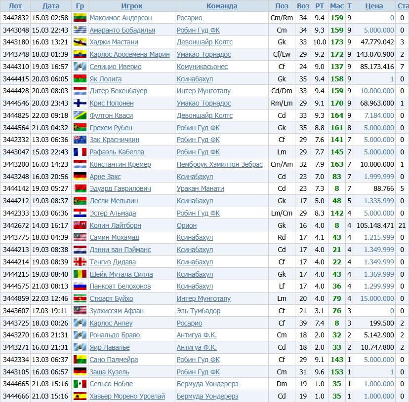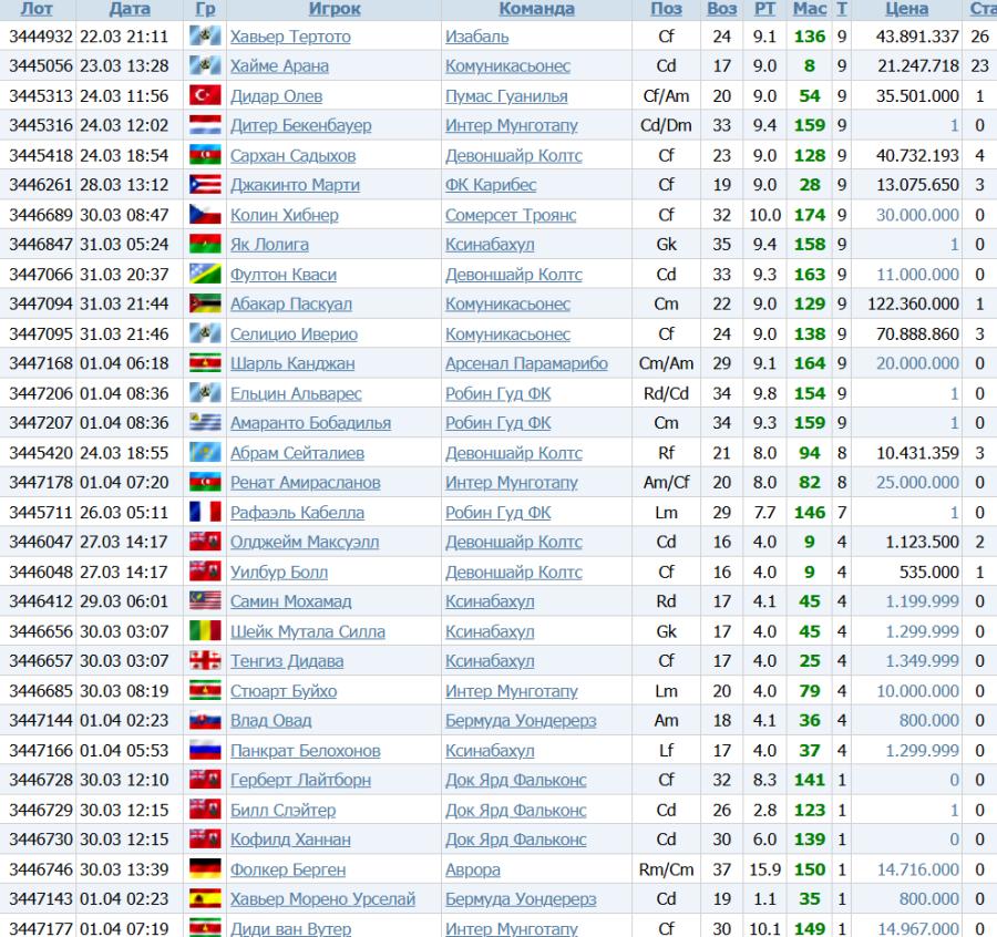 ![]() Игроков на трансферном рынке Карибской лиги - 31 Игроков с талантом 9 - 14 ![]() На фото: бутсосын Франца Бекенбауэра Дитер Бекенбауэр. Президент клуба Интер Мунготапу KRomanych готов расстаться с легендарным однофамильцем Кайзер Франца всего за 1 гольден. |