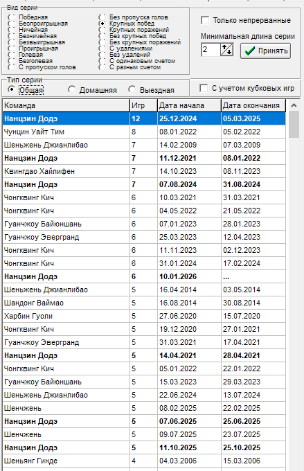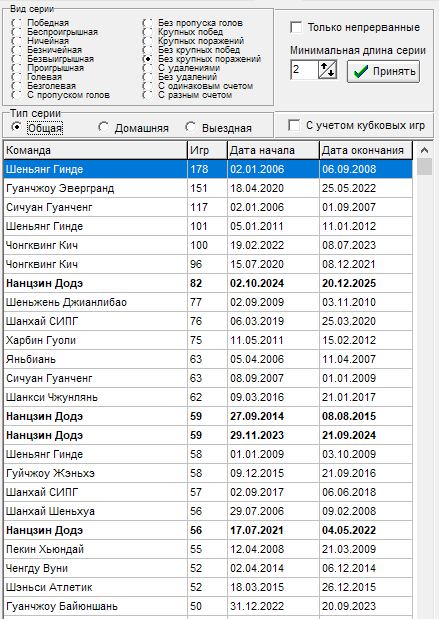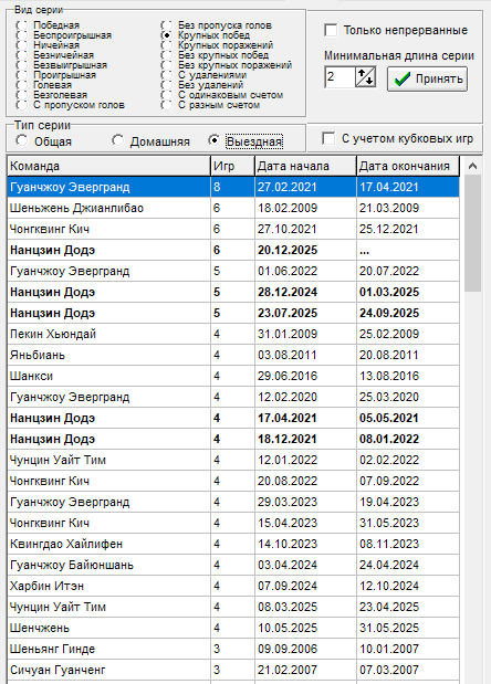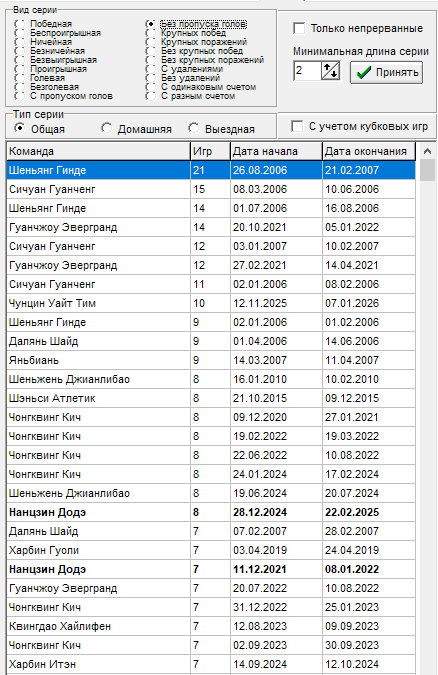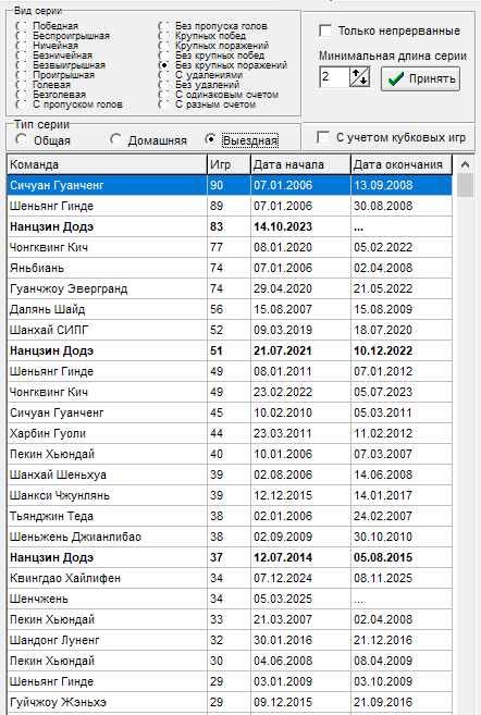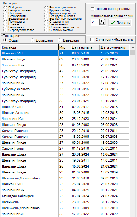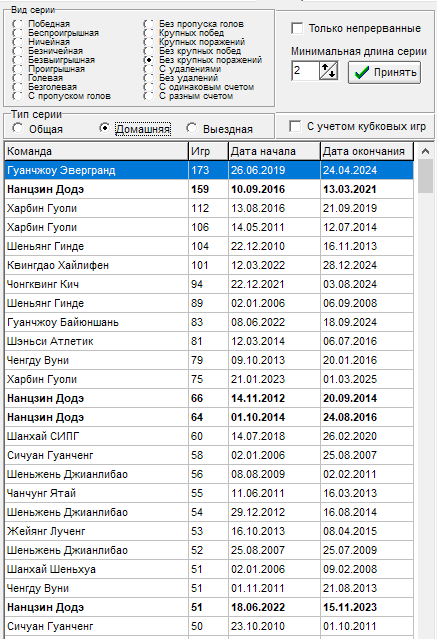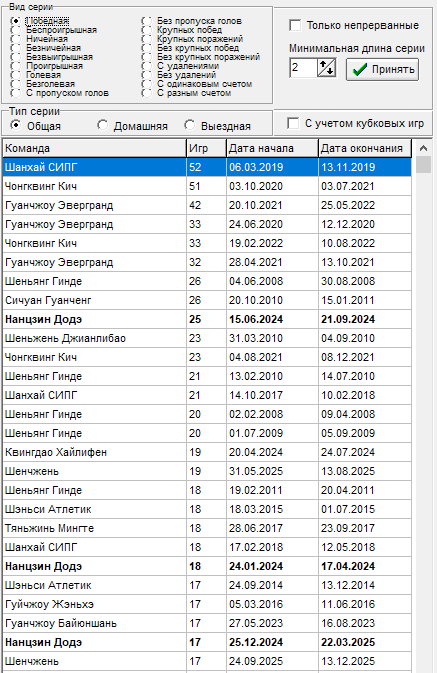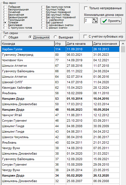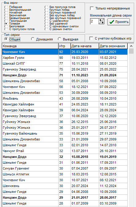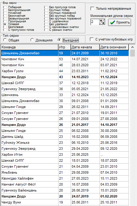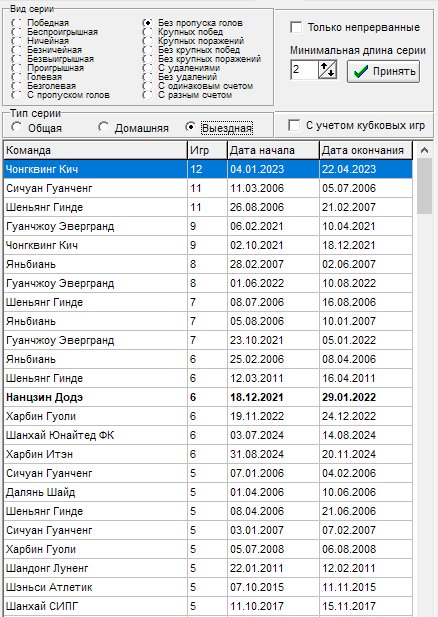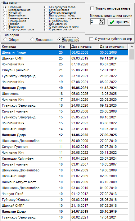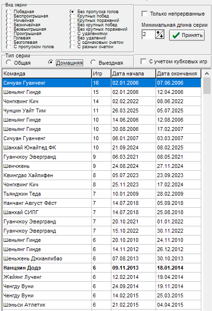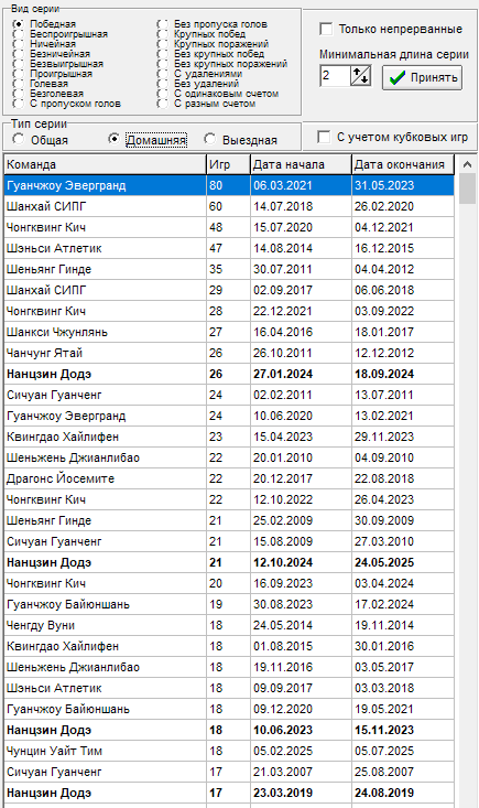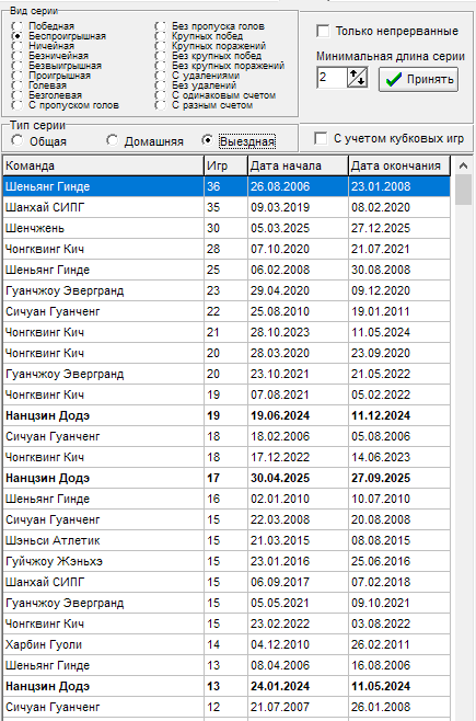 16 тур - Чонгквинг Кич - прервалась серия в 12 игр на выезде без пропуска голов, всему виной гол от Ухань