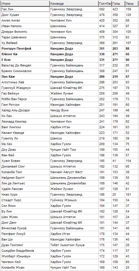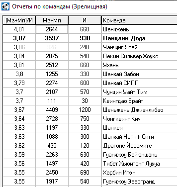 Всем добрый день! Перелопатив каждый тур Чемпионата ФС Китая в Дивизионе-1, получились такие вот занимательные данные борьбы за призовые места. Так сказать посмотрим, кто есть кто на протяжении многих уже лет.