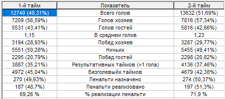 Напомню, это статистика по первому дивизиону за всю его историю с 3 по 47 сезон включительно. Если кому-то нужны показатели по его команде отдельно, есть возможность это вам предоставить, пишите.