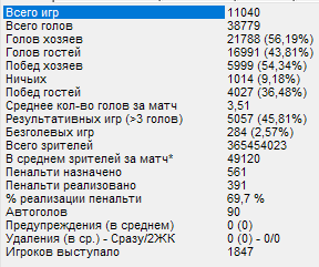 Напомню, это статистика по первому дивизиону за всю его историю с 3 по 42 сезон включительно. Если кому-то нужны показатели по его команде отдельно, есть возможность это вам предоставить, пишите.