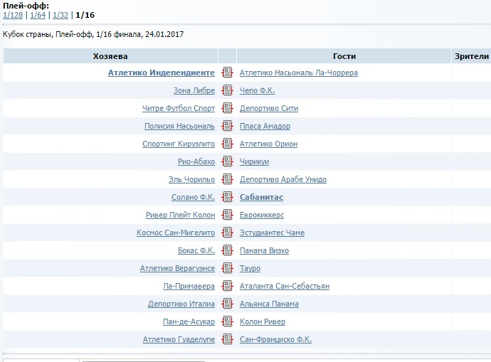 Эстадио Чепо Кубок страны, Плей-офф, 1/16 финала