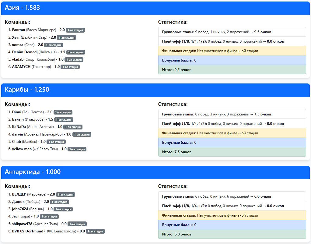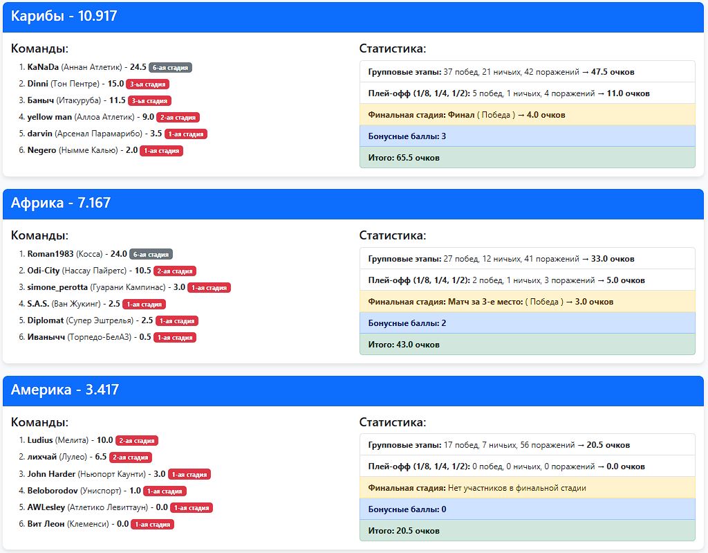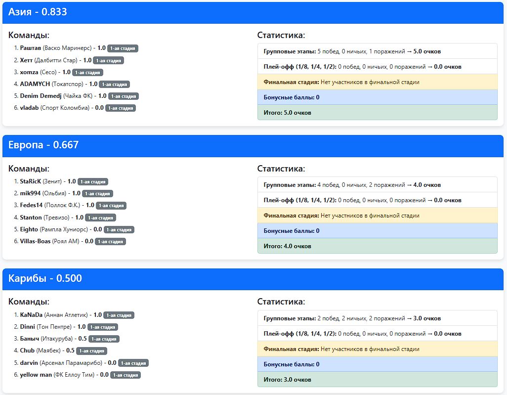 Межконтинентальный Кубок Карибской Лиги-18 (Битва континентов) 2-я стадия. Картинка после 18 туров.