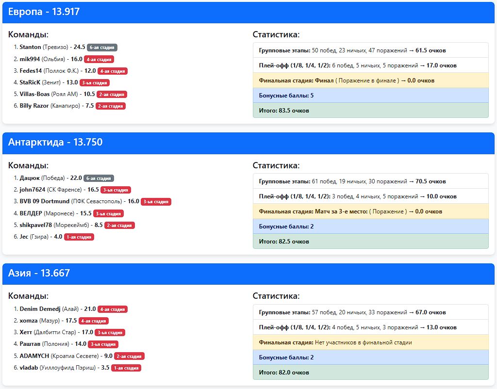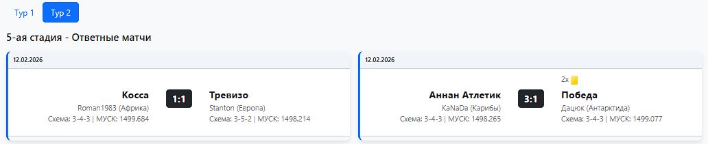 Обыграли дважды польский Мазур (4:0 дома и 4:3 в гостях) Николая (хомза) из стана континента Азия.